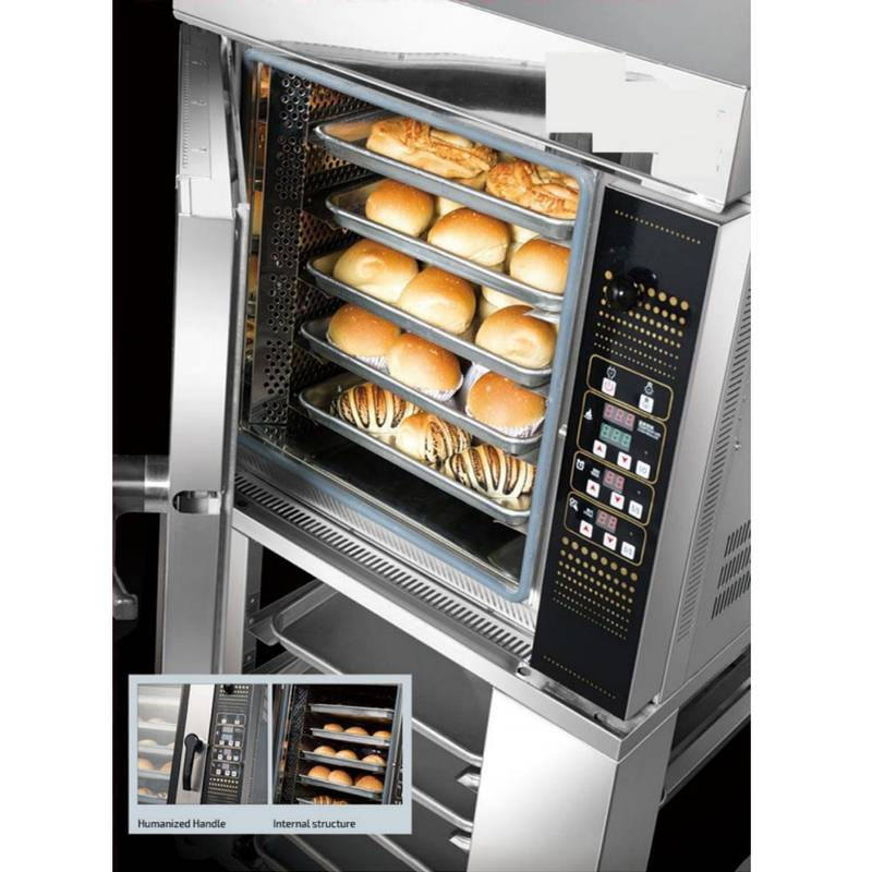 6. The convection oven has double layer safety glass door and halogen light inside to make one able to see the paste/dough throughout the baking process.