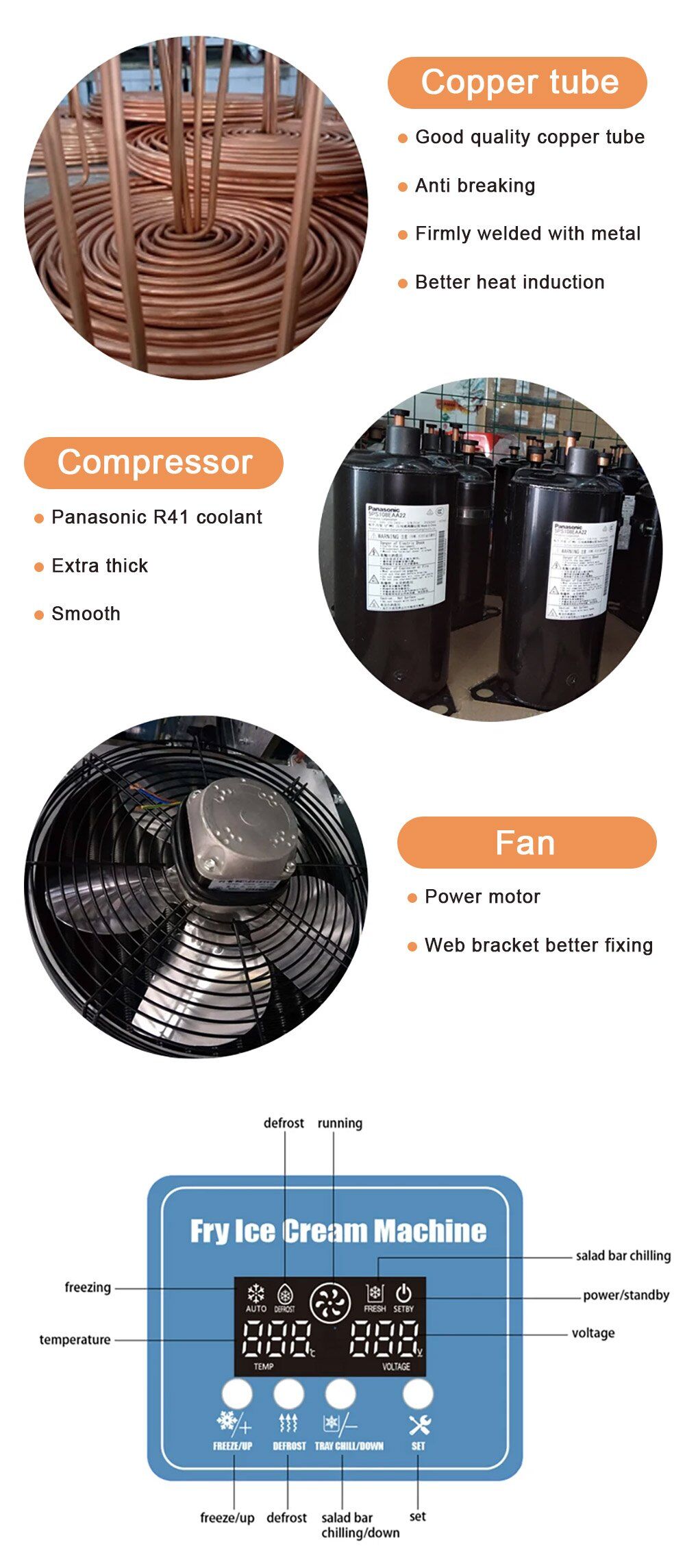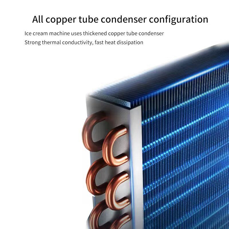Ice cream machine uses thickened copper tube condenser Strong thermal conductivity, fast heat dissipation.