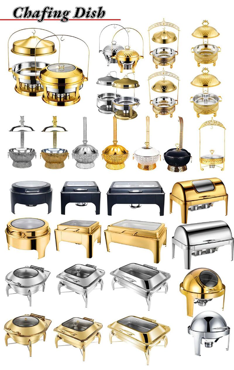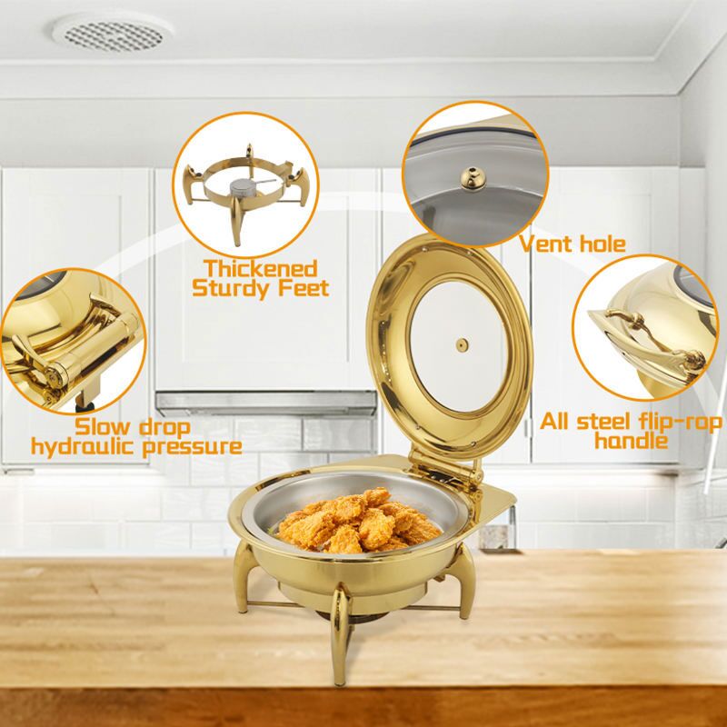 The soild gold handle and prevent hurt, elegantly display catering food straight the buffet table.