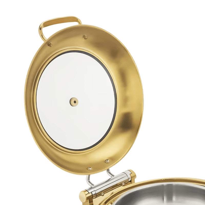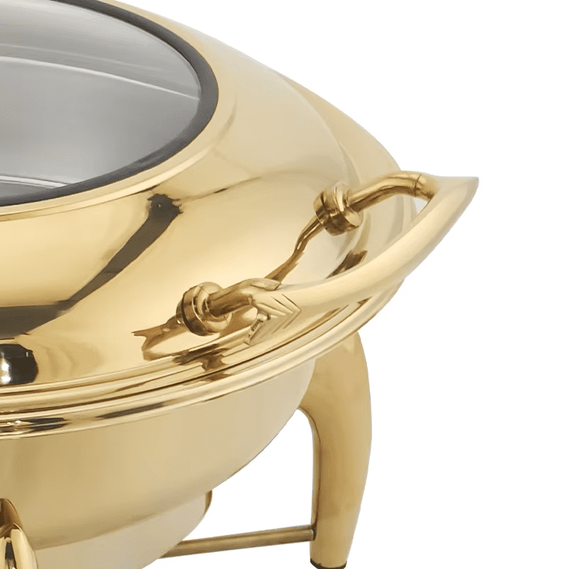 2. Elegant Gold Design: The sophisticated gold finish delivers a luxurious metallic texture, elegantly showcasing catered dishes from oven to buffet table. Ideal for commercial use in restaurants or hotels.