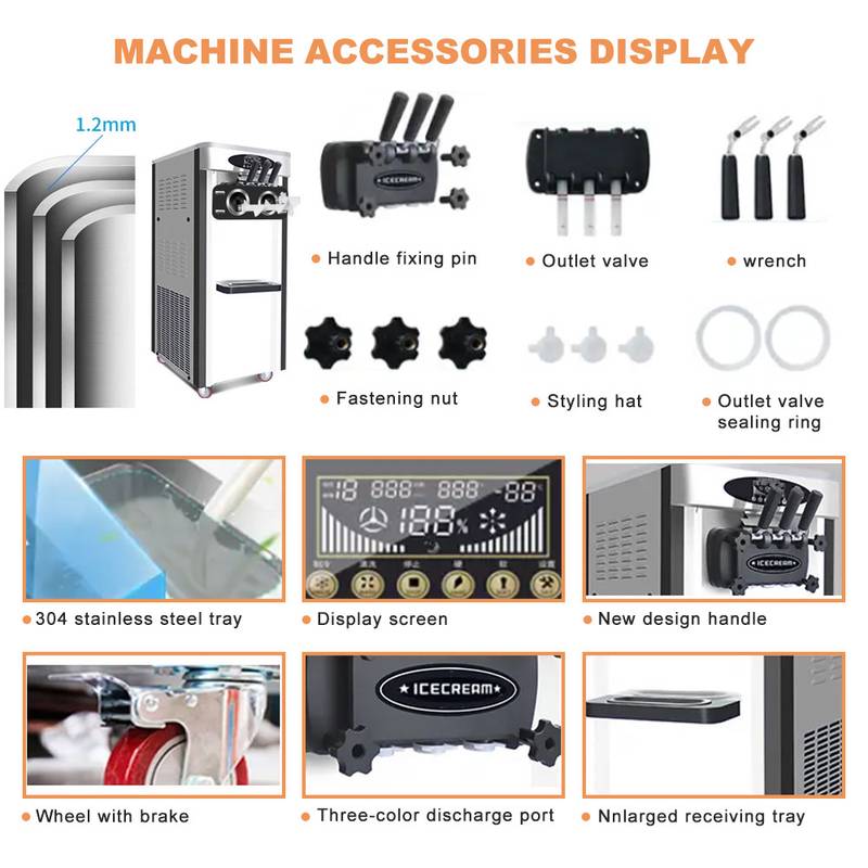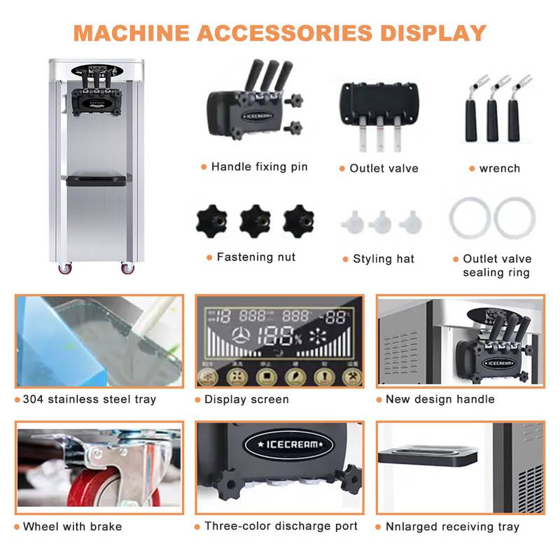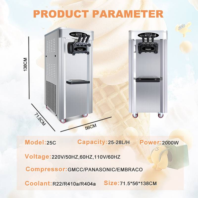 Factory Sales 25-28L/H 2+1 Flavors Soft Serve Ice Cream Machine
